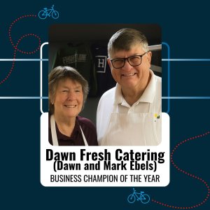 Dawn Fresh Catering, led by Mark and Dawn Ebels, is being honored for nearly 30 years of dedicated support to the League of Michigan Bicyclists and Michigan’s cycling community. Through homemade meals, exceptional service, and unwavering partnership at LMB events across the state, they have helped fuel riders and volunteers while fostering a true culture of community around bicycling. Their long-standing commitment makes them a deserving Business Champion of the Year.